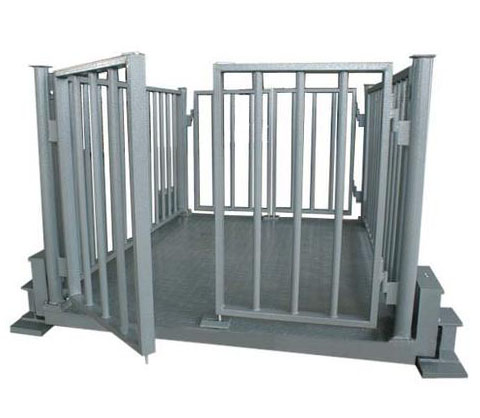 牲畜秤是畜牧業、屠宰行業設計的電子秤。此類型秤采用鋼結構秤臺,配用四只高精度剪切梁式稱重傳感器和稱重顯示儀表組成稱重系統。該系統準度高,稱量迅速,工作穩定可靠。特別適用稱量各種活牲畜。牲畜秤結構緊固耐用,特別添加護欄和進出柵欄門,防動物進出。還可配單面斜坡或雙面斜坡。